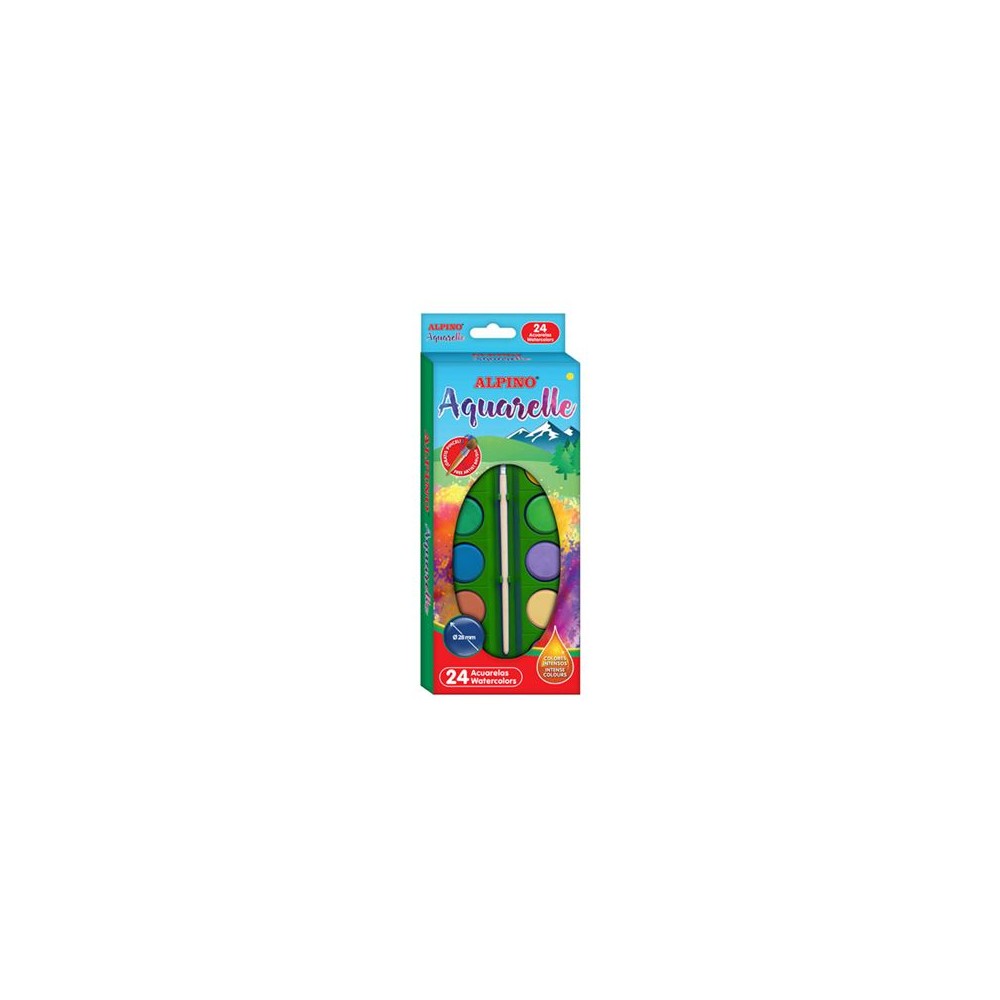 Alpino Pack de 24 Acuarelas - 28mm Diametro - Colores Intensos - Incluye Pincel - Colores Surtidos