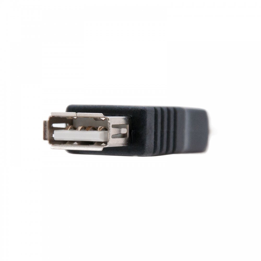 Adaptador USB 2.0 con conector tipo A hembra en un extremo y tipo micro USB B macho en el otro.