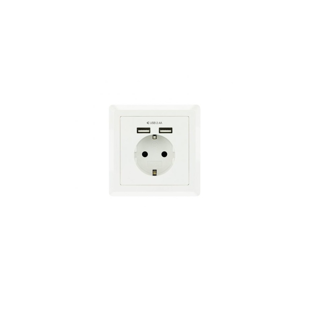 Base de enchufe de pared tipo Schuko con 2 tomas USB.