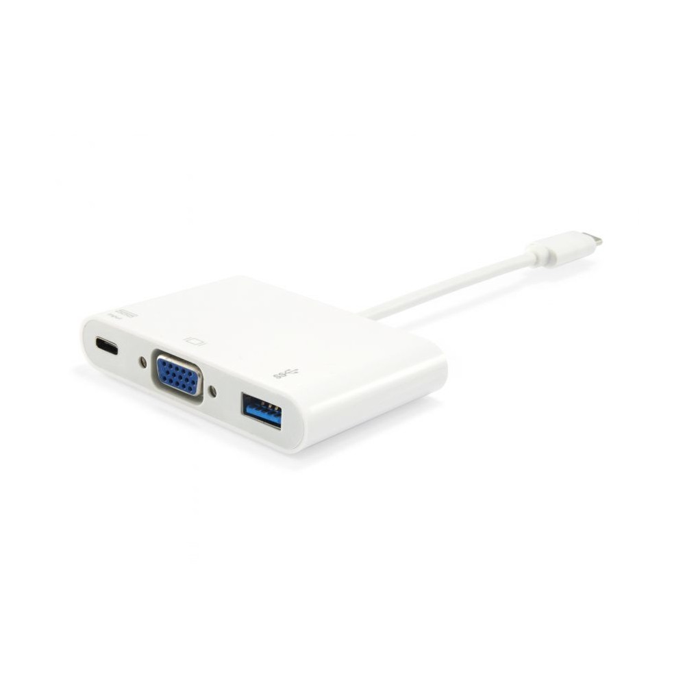Equip Adaptador USB-C Macho a VGA Hembra / USB-C Hembra / USB-A Hembra 3.0 Ver más grande