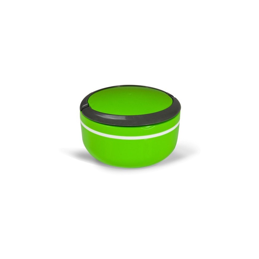 Ten siempre tus alimentos bien conservados. Recipiente alimentario con doble cierre. Cuerpo exterior verde, cuerpo interno blanco, mango gris.