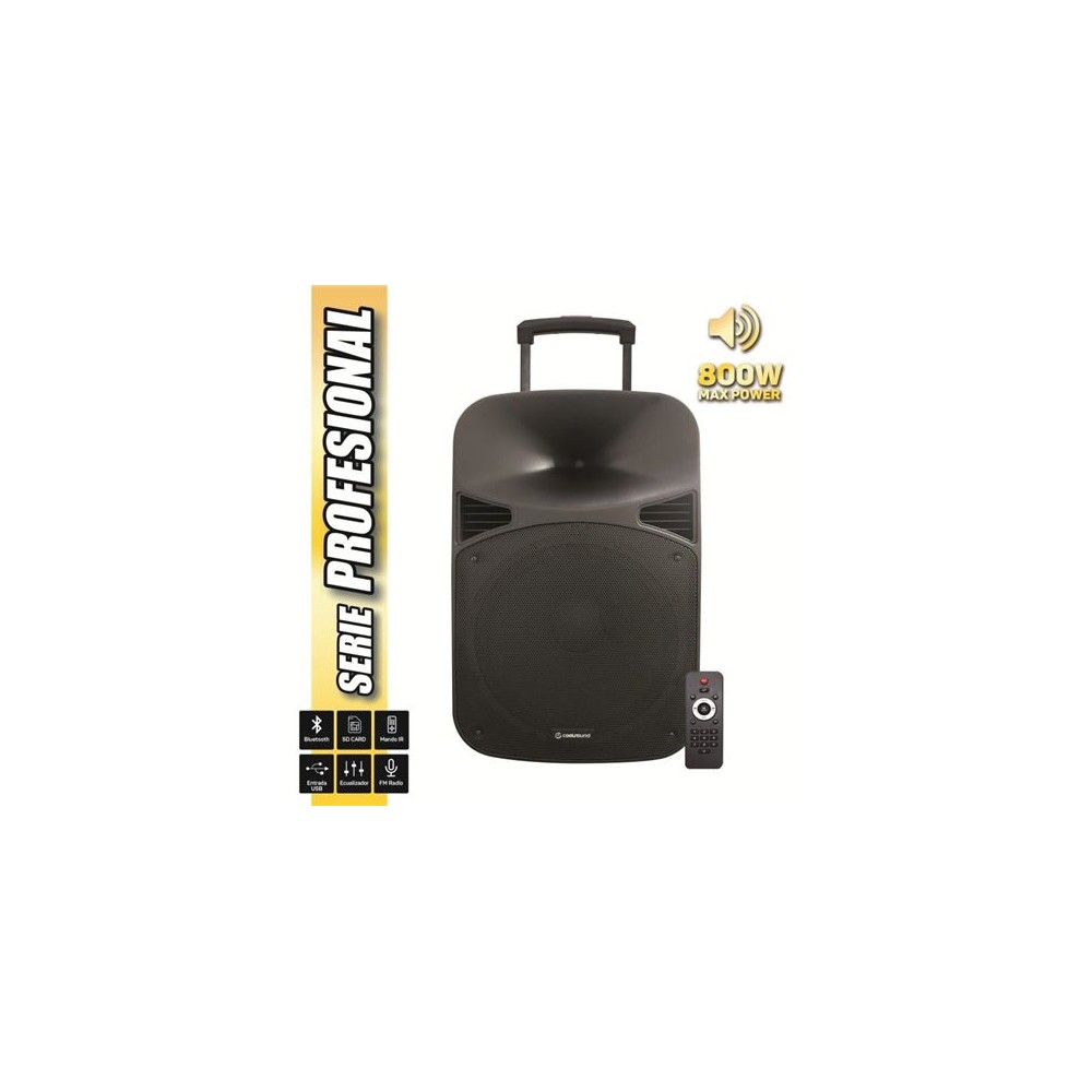 Coolsound Serie Pro Altavoz Autoamplificado 150W RMS 15" - Bluetooth, USB, SD, Entrada Jack 6.3mm, Radio FM - Asa y Ruedas de Tr