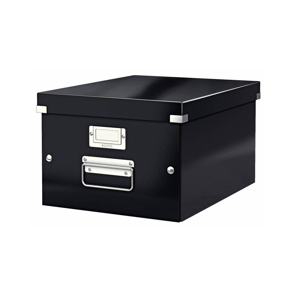 Leitz Caja Almacenaje Mediana Click & Store Wow - Montaje Rapido y Sencillo - Asas de Metal - Carton Negro - Efecto Wow