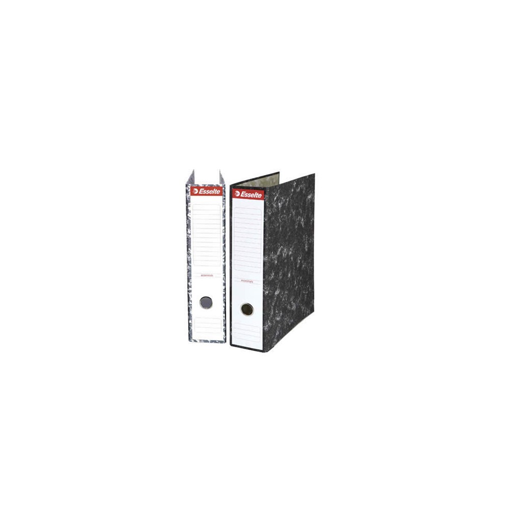 Esselte Archivador de Palanca - Carton - Cantoneras Metalicas - Lomo 75mm - Capacidad para 500 Hojas - Color Negro Jaspeado