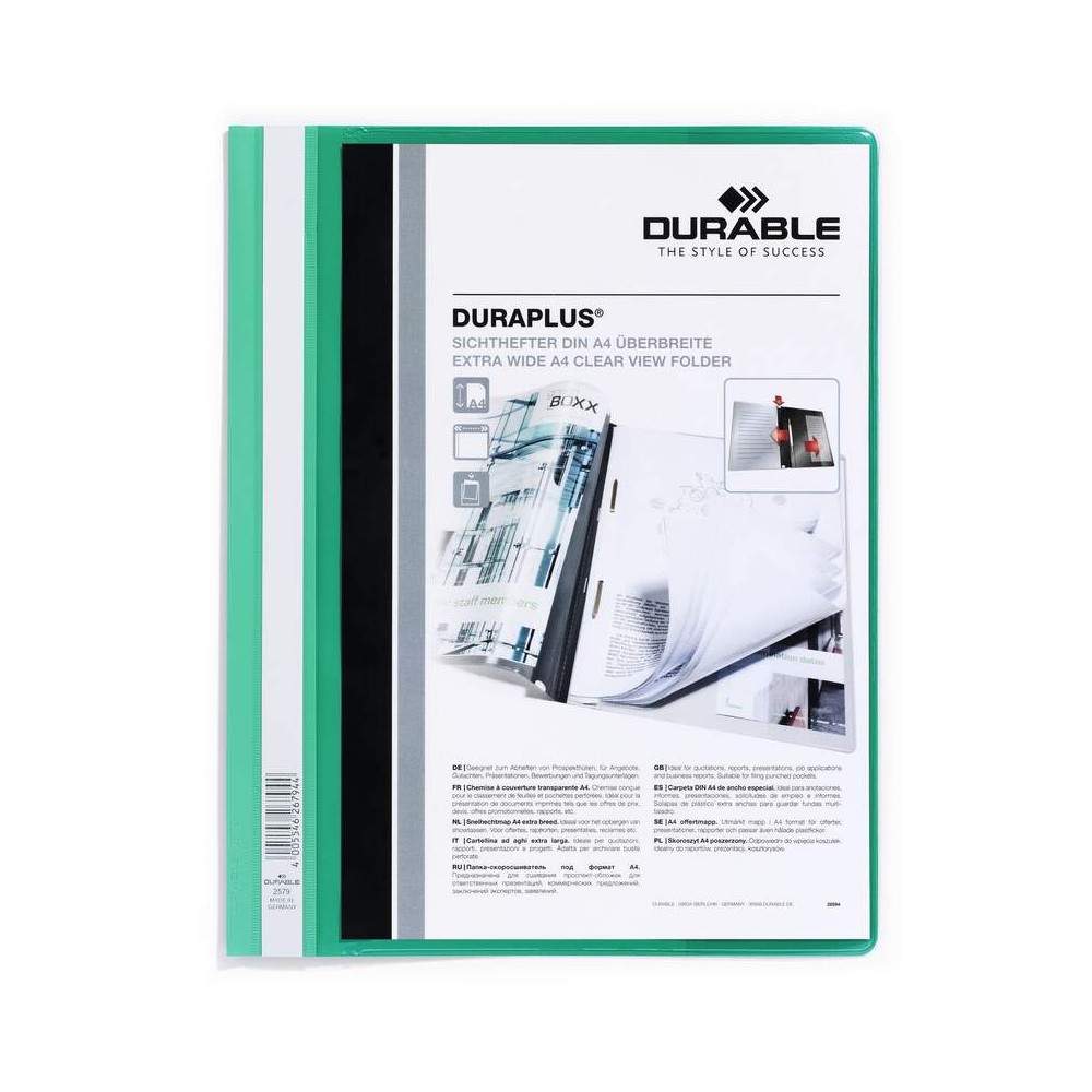 Durable Duraplus Carpeta de Fastener - Para Formato A4+ - Compartimento Interior - Tapa Posterior de Color Verde