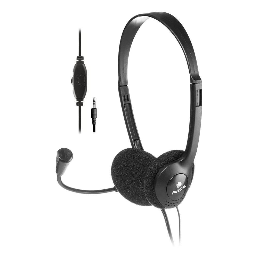 NGS MS103 Pro Auriculares con Microfono - Microfono Flexible - Diadema Ajustable - Control en Cable - Cable de 1.80m - Color Neg