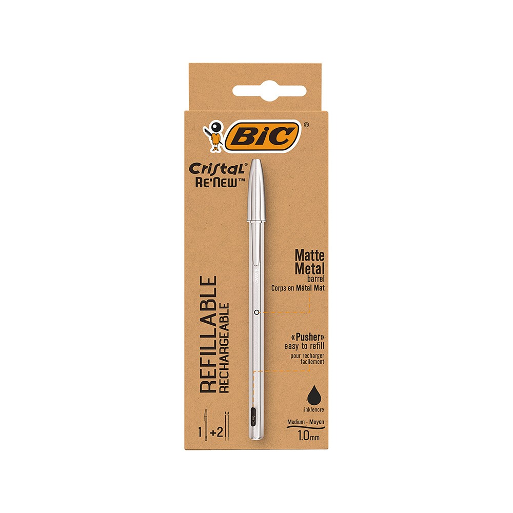 Bic Cristal Re´new Boligrafo de Bola con Cuerpo Metalico + 2 Recambios - Punta Media de 1.0mm - Tinta con Base de Aceite - Color Ver más grande