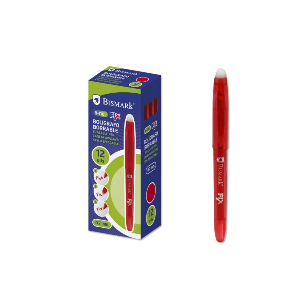 Bismark Fix Boligrafo Borrable - Punta Fina 0.7mm - Con Capuchon - Color Rojo