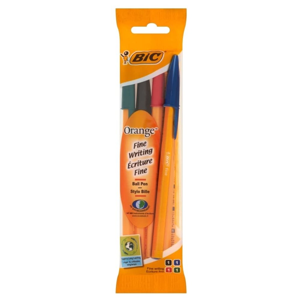 Bic Orange Original Fine Pack de 4 Boligrafos de Bola - Punta Redonda de 0.8mm - Trazo de 0.3mm - Tinta con Base de Aceite - Cue