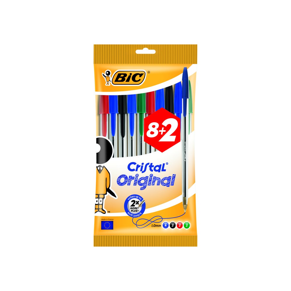 Bic Cristal Original Pack de 10 Boligrafos de Bola - Punta Redonda de 1.0mm - Trazo 0.4mm - Tinta con Base de Aceite - Colores S