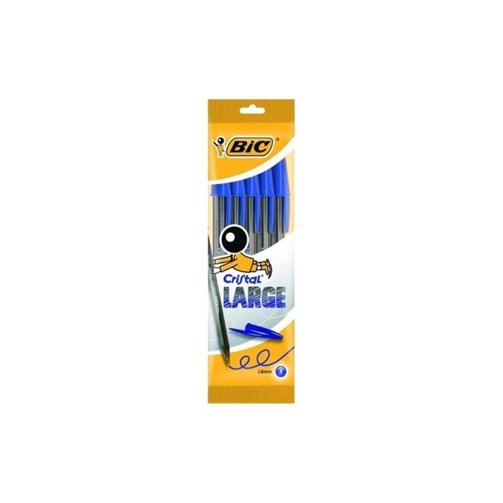 Bic Cristal Large Pack de 5 Boligrafos de Bola - Punta Redonda de 1.6mm - Trazo 0.6mm - Tinta con Base de Aceite - Color Azul