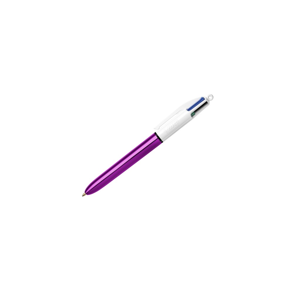 Bic 4 Colours Shine Boligrafo de Bola Retractil - Punta de 1mm - Trazo de 0.4mm - Tinta con Base de Aceite - Cuerpo Morado Metal