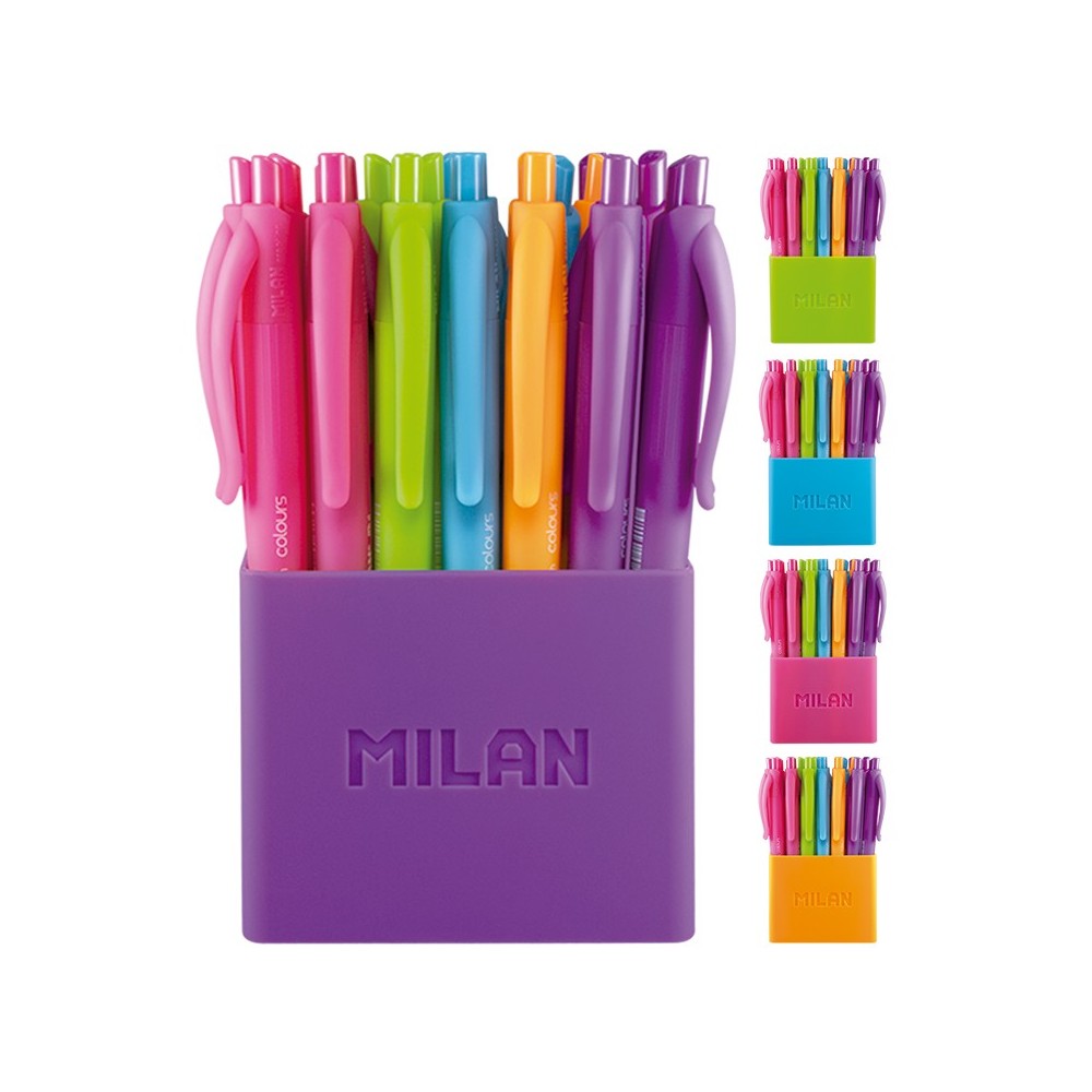 Milan P1 Touch Colours Pack de 24 Boligrafos de Bola Retractiles - Punta Redonda 1.0 mm - Tinta con Base de Aceite - Cuerpo del