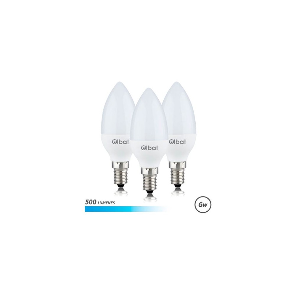 Elbat Bombillas LED C37 Pack de 3 - 6W - 500LM - Base E14 - Luz Fria - Ahorro Energetico - Blanco Frio