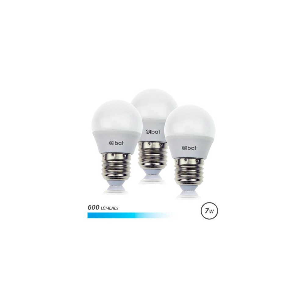 Elbat Pack 3 Bombillas - Potencia 7W - Lumenes 600 - Tipo de Luz 6500K Luz Fria - Casquillo E27 - Angulo 220º - Dimensiones 45X7
