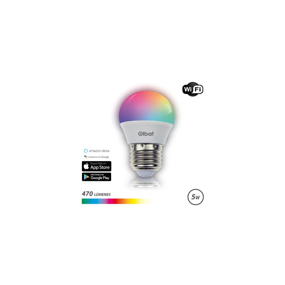 Elbat Bombilla LED Esferica Smart Wi-Fi G45 E27 5W 470lm RGB