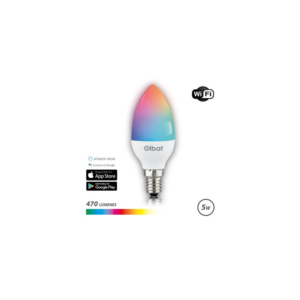 Elbat Bombilla LED Vela Smart Wi-Fi C37 E14 5W 470lm RGB