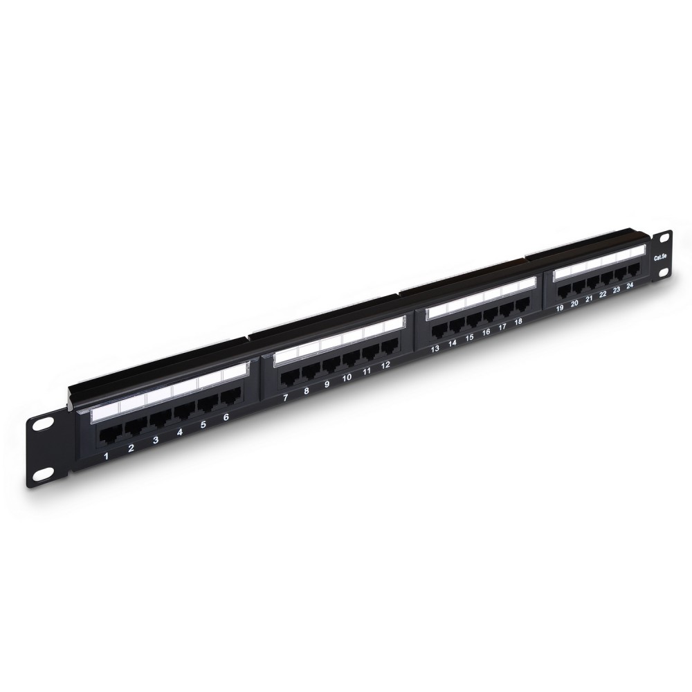 Panel de parcheo de 24 puertos para conexión RJ45 cat.5e utp.
