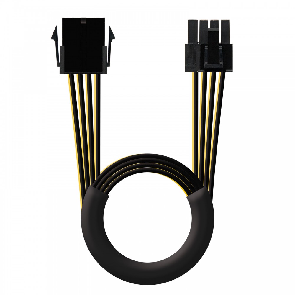 Cable de alimentación alargador para tarjeta gráfica con conexión PCI-e 6 + 2 pines. Cable de alimentación alargador para tarjeta gráfica con conexión PCI-e 6 + 2 pines. Conector PCI-e 8 pines hembra en un extremo y un conector 6+2 pines macho en el otro.