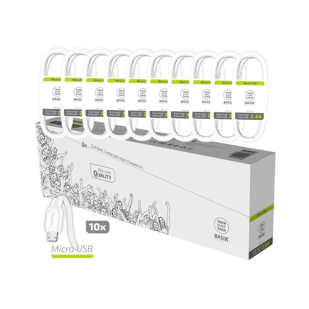 TechOneTech Basik Pack de 10 Cables USB Macho - MicroUSB Macho - Longitud 1m