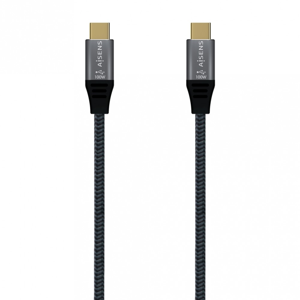 Aisens Cable USB 3.2 Gen2x2 Aluminio 20Gbps 8K@30Hz 5A 100W E-Mark, Tipo USB-C/M-USB-C/M - 0.6m - Color Gris