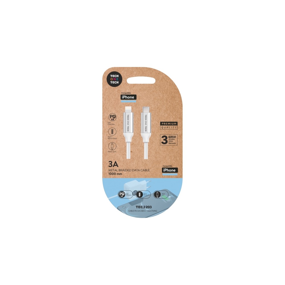 TechOneTech Cable USB-C PD 3.0 Macho a Lightning Macho 1m - Recubierto de Nylon Trenzado Ver más grande
