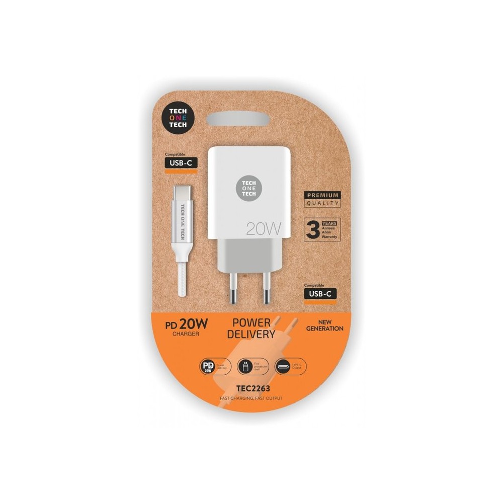 TechOneTech Cargador de Pared PD 20W + Cable USB-C a USB-C