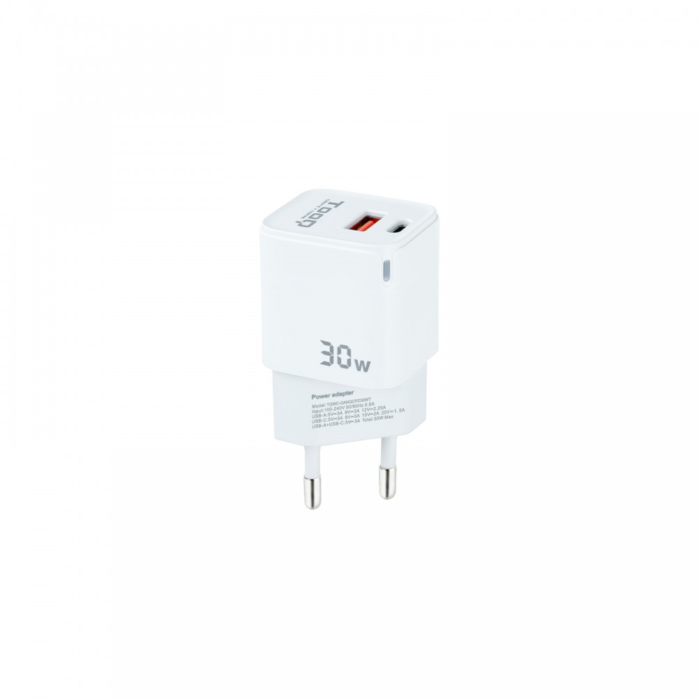 Tooq Cargador de Pared GaN USB-C/PD + USB-A/QC 30W - Color Blanco