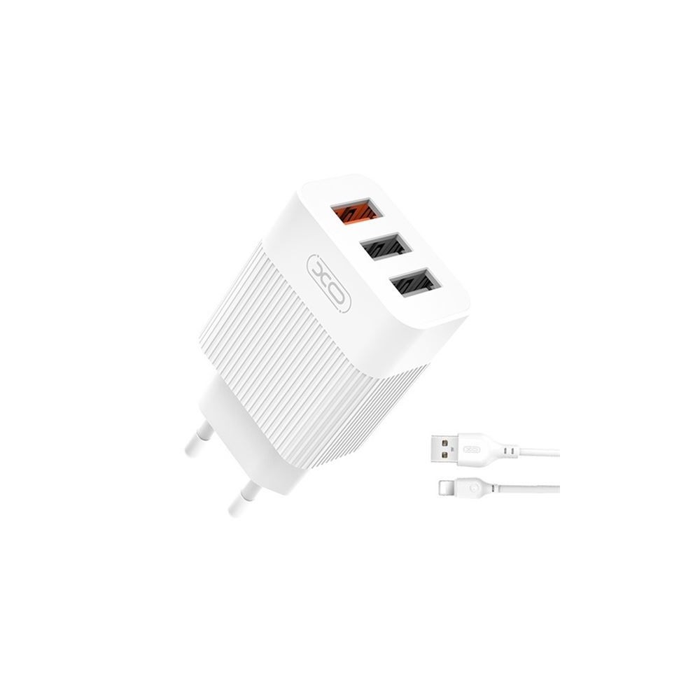 XO L72 Pack Cargador de Corriente 1x USB-A 18W Carga Rapida 3.0, 2x USB-A + Cable USB-A a Lightning