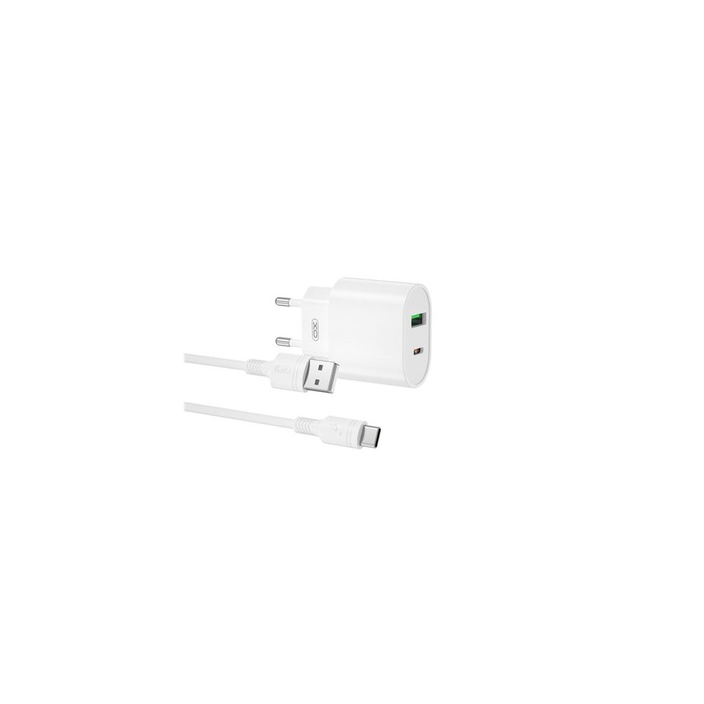 XO L81ATC Cargador de Corriente Tipo C y USB QC 3.0 20W + Cable Tipo C - Carga Rapida - Salida con Proteccion Inteligente - Colo