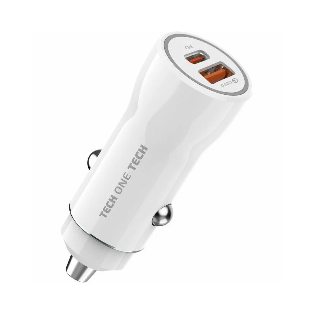 TechOneTech Cargador de Coche 1x USB-A, 1x USB-C - Salida max. 38W - Color Blanco