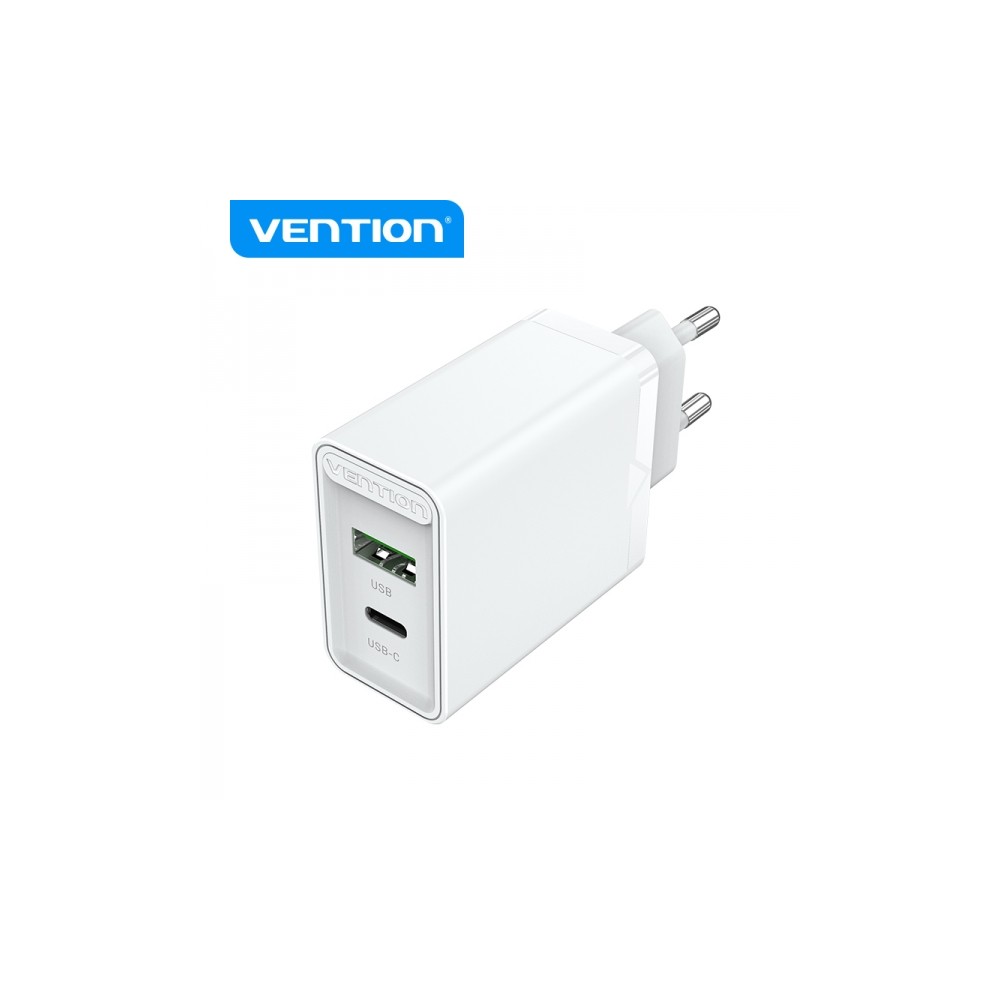 Vention Cargador de Pared USB (C+A) 3.4A 20W PD3.0/QC4.0 FBBB0-EU - Carga rapida - Color Blanco