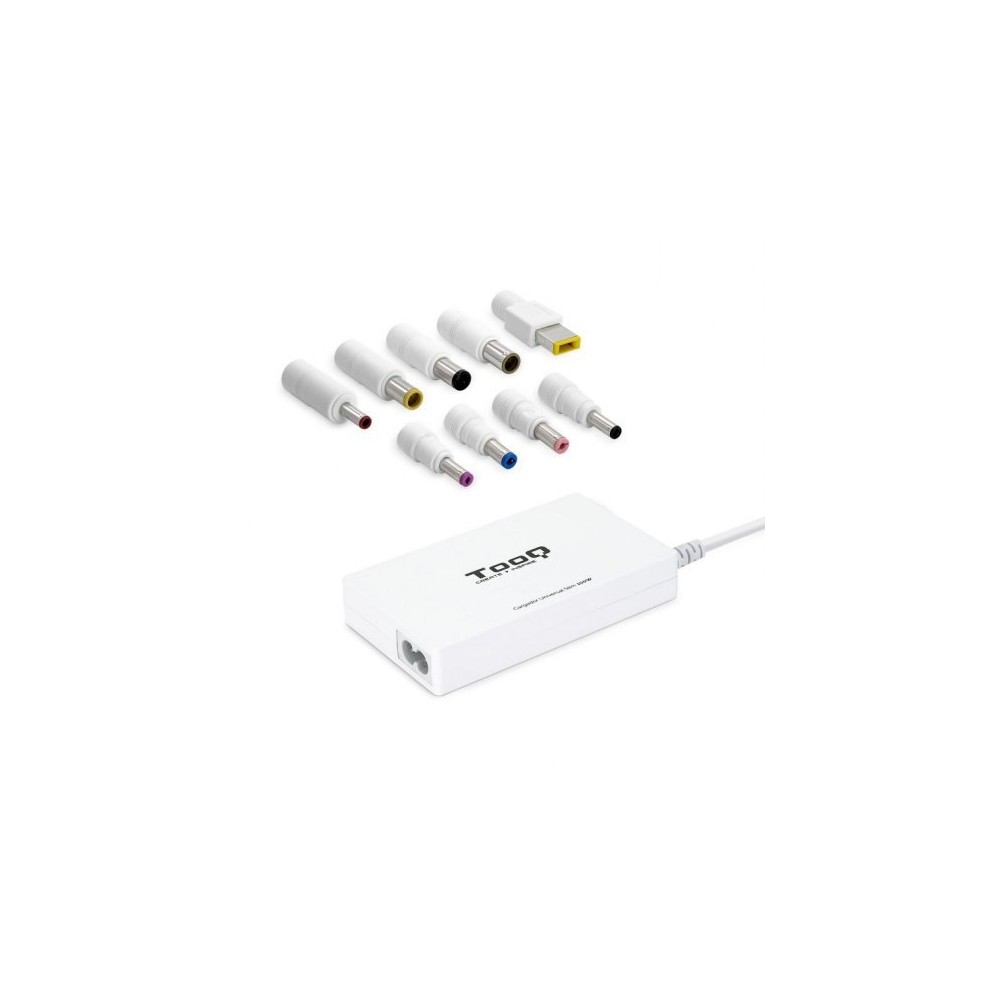 Tooq Cargador Universal Automatico para Portatil 100W - USB - 9 Adaptadores - Voltaje 18.5-20V - Diseño Slim - Color Blanco