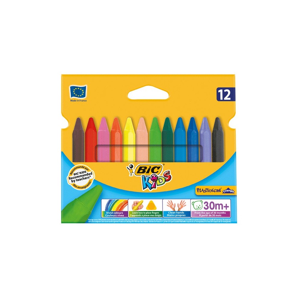 Bic Kids Plastidecor Peques Caja de 12 Lapices de Cera Triangulares - Ideal Niños Pequeños - Textura blanda - No Mancha