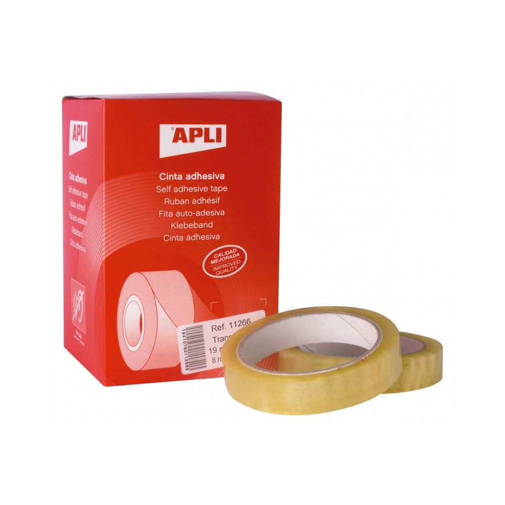 Apli Pack de 8 Cintas Adhesivas Transparente 19 mm x 66 m