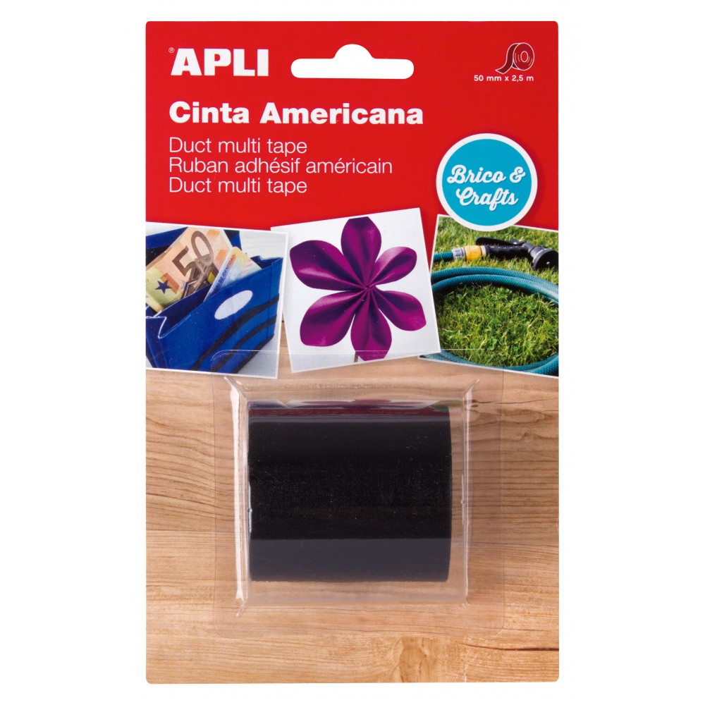 Apli Cinta Americana Multiuso - 50mm x 25m - Resistente al Agua y a la Intemperie - Adhesivo Fuerte y Duradero - Color Negro