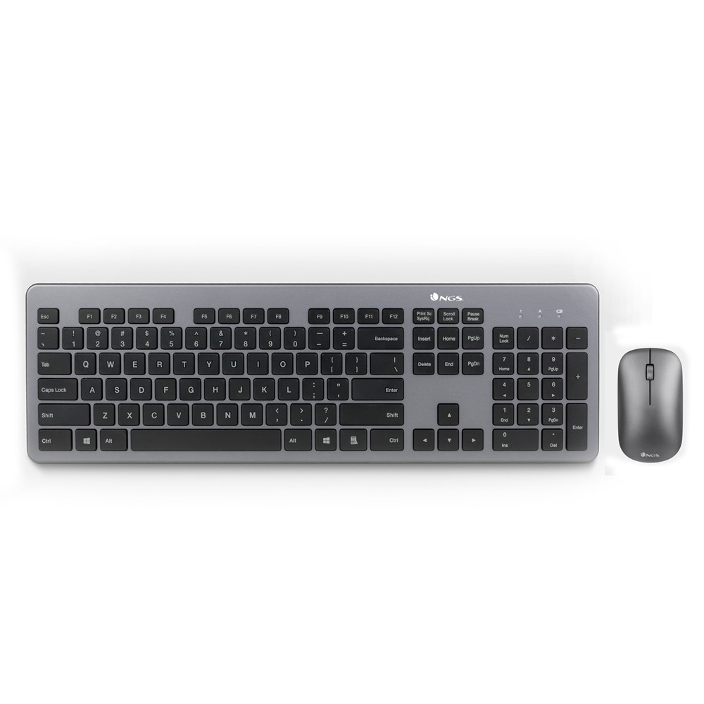 NGS Matrix Kit es un conjunto de teclado y ratón inalámbricos de 2,4 GHz. con teclas multimedia y diseño slim que facilitarán a los usuarios sus tareas informáticas cotidianas. Su ratón óptico regulable en velocidad 800/1200/1600 dpi está dotado de una gran precisión en sus movimientos. Incluye rueda metálica antideslizante para proporcionar un mayor agarre con scroll y 2 botones. Incorpora un nano receptor que puede transportarse en el propio ratón o quedar conectado permanentemente al portátil sin riesgo de caída o pérdida.