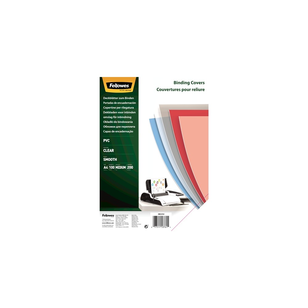 Fellowes Pack de 100 Portadas para Encuadernar de PVC A4 - 200 Micras - Acabado de Calidad - Color Transparente