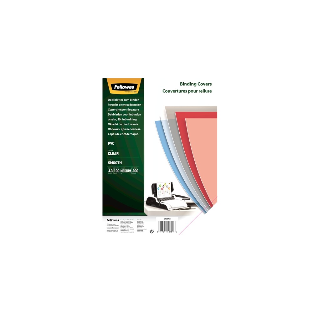 Fellowes Pack de 100 Portadas para Encuadernar de PVC A3 - 200 Micras - Muy Resistentes - Transparente
