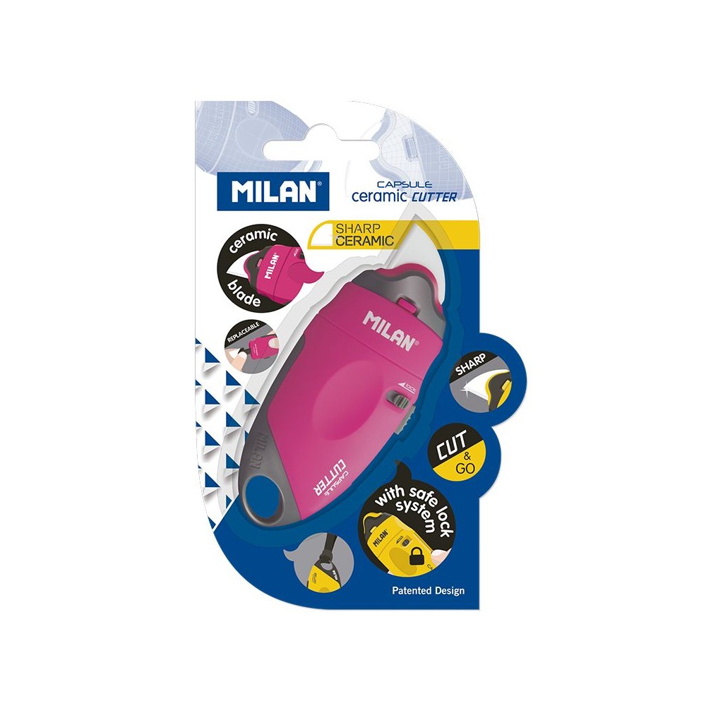 Milan Capsule Ceramic Cutter de Hoja Ceramica Reemplazable - Tamaño Bolsillo - Diseño Ergonomico - Sistema de Bloqueo - Color Al