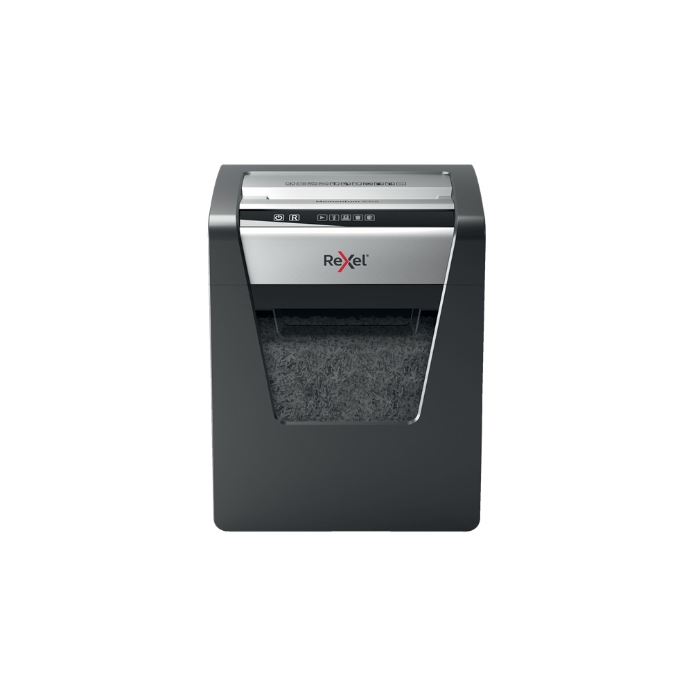 ¡La potencia para destruir más! La destructora de papel Rexel Momentum X415 destruye hasta 15 hojas de una vez, funciona ininterrumpidamente durante 2 horas y es ideal para oficinas pequeñas. La tecnología antiatasco del modelo X415 garantiza el funcionamiento ininterrumpido. P4, corte cruzado (partículas de 4 × 40 mm). Trituradora silenciosa con botones táctiles sencillos e intuitivos y una generosa papelera de 23 litros de capacidad (225 hojas A4).