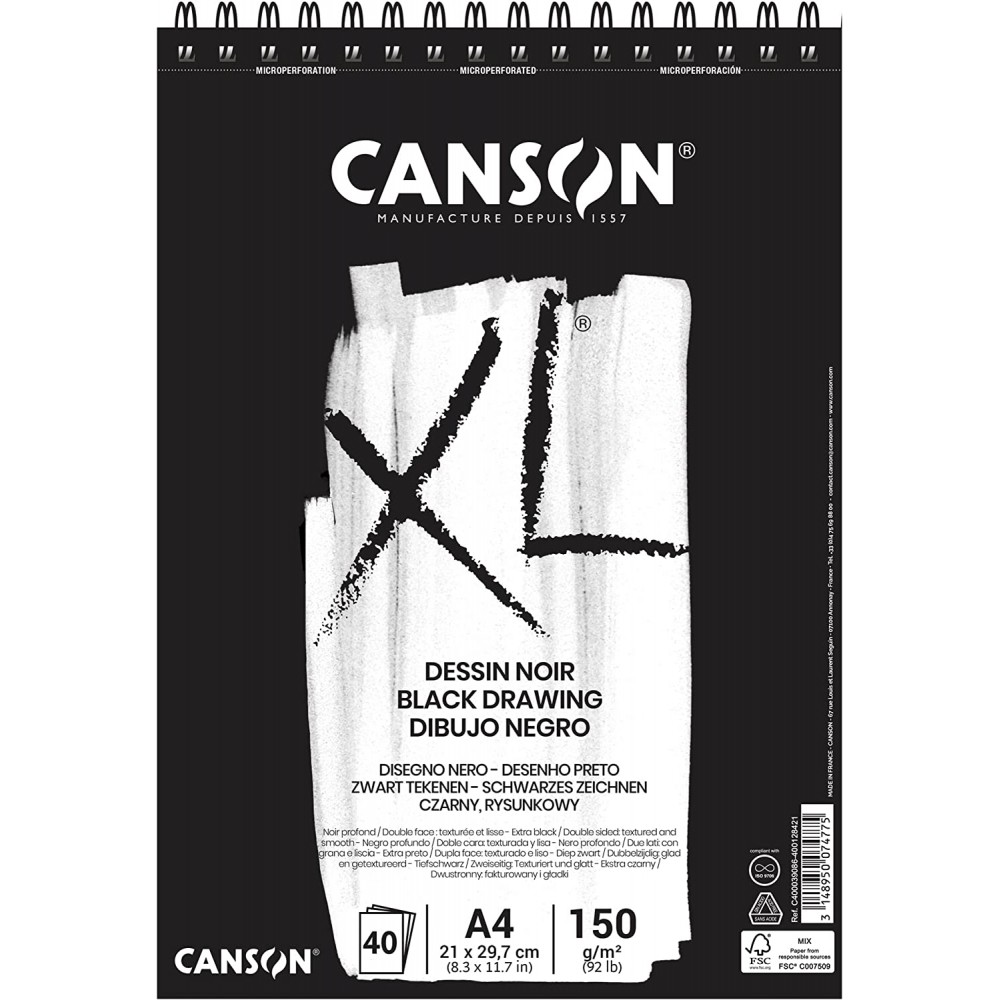 Canson XL Black Bloc de 40 Hojas A4 - Grano Fino - Espiral Microperforado - 21x29.7cm - 150g.