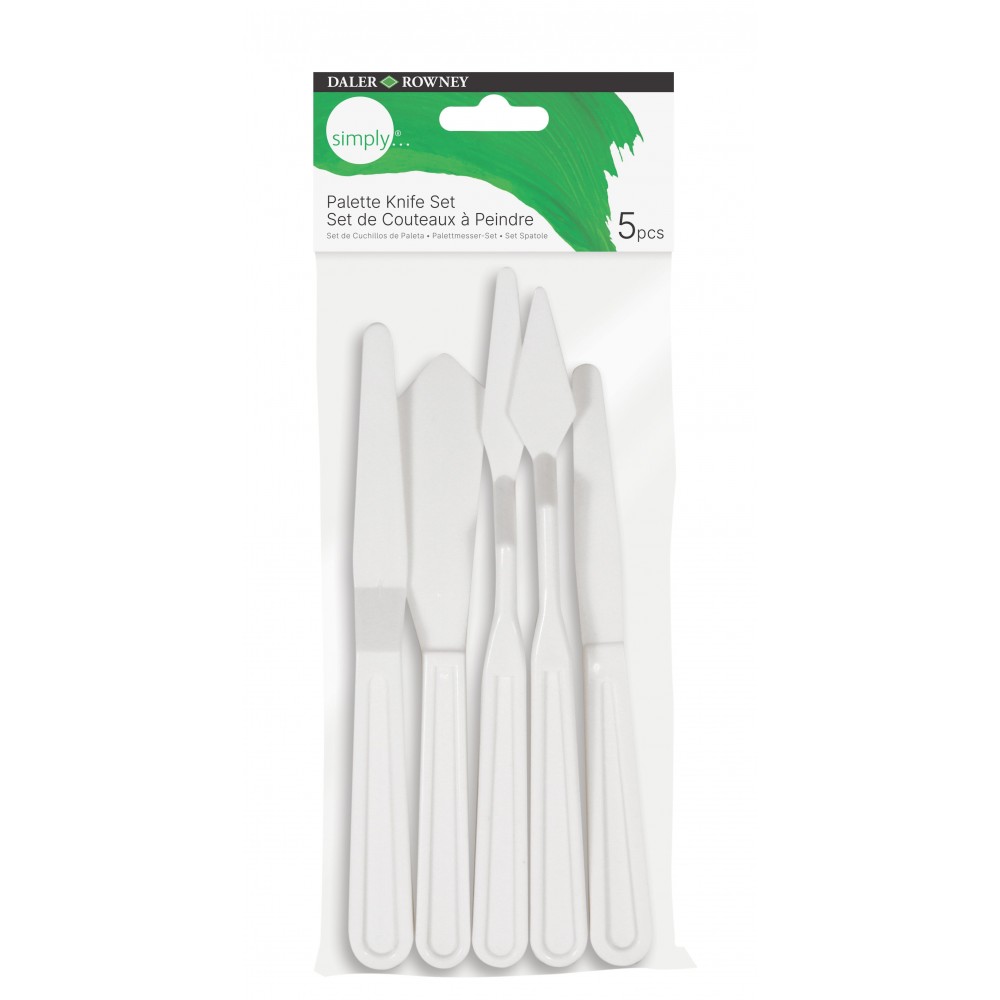 Daler Rowney Simply Pack de 5 Espatulas de Plastico - Diferentes Formas - Plastico Duradero - Color Blanco