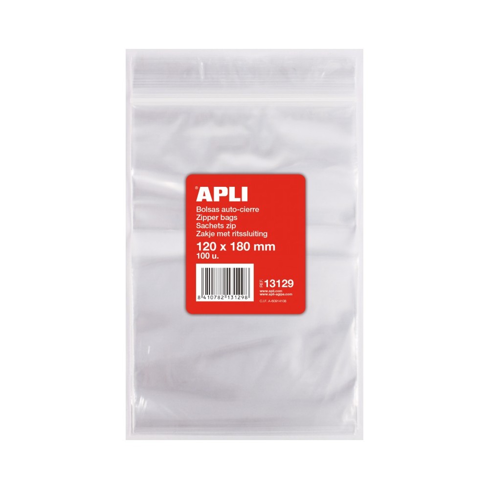 Apli Pack de 100 Bolsas de Auto Cierre 120 x 180 mm - Cierre Seguro - Aptas para Alimentos