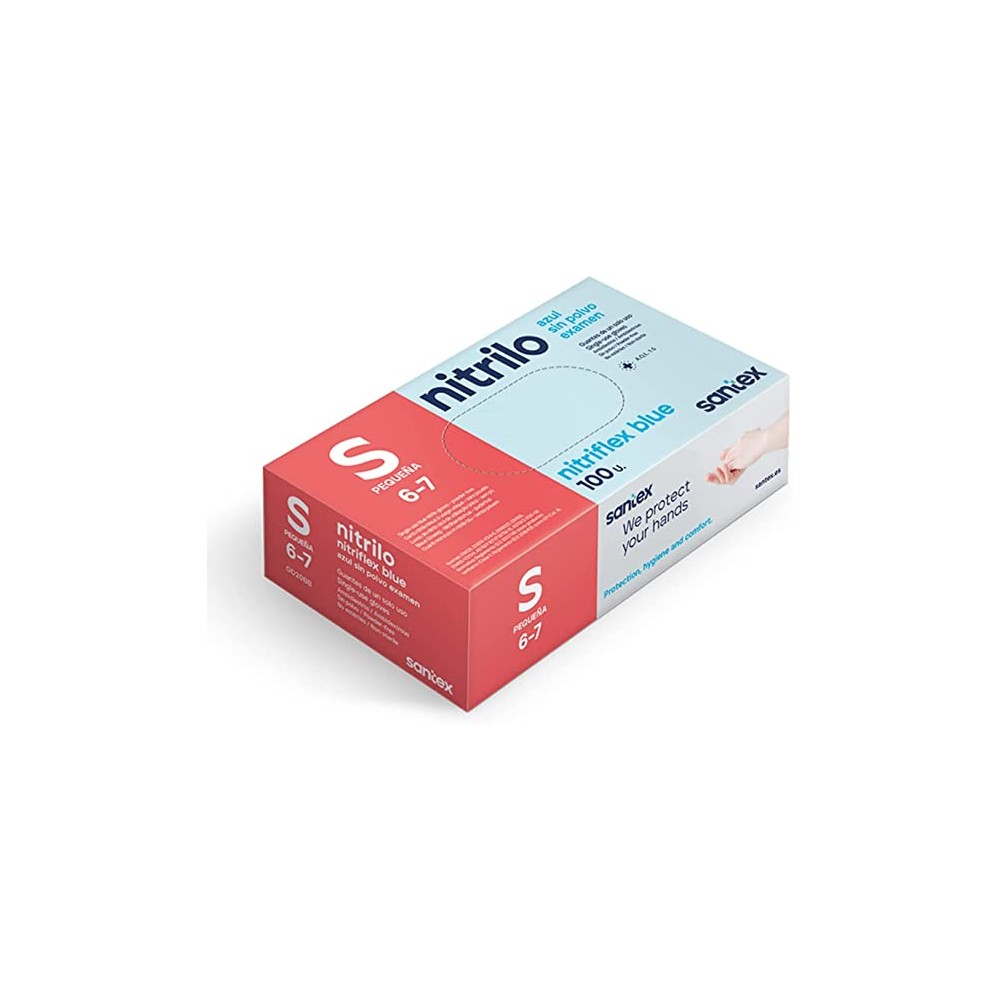 Santex Nitriflex Blue Pack de 100 Guantes de Nitrilo para Examen Talla S - 3.5 gramos - Sin Polvo - Libre de Latex - No Esterile
