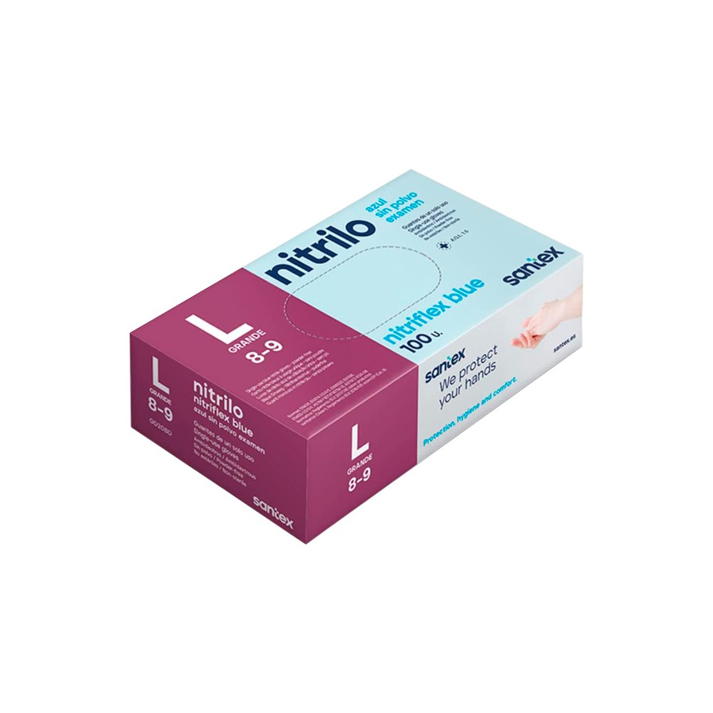 Santex Nitriflex Blue Pack de 100 Guantes de Nitrilo para Examen Talla L - 3.5 gramos - Sin Polvo - Libre de Latex - No Esterile