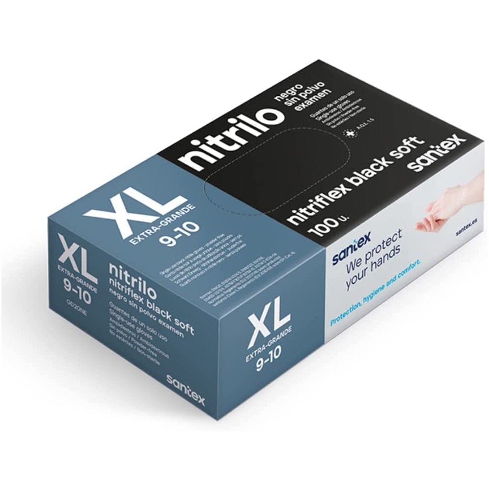 Santex Nitriflex Black Soft Pack de 100 Guantes de Nitrilo para Examen Talla XL - 3.5 gramos - Sin Polvo - Libre de Latex - No E