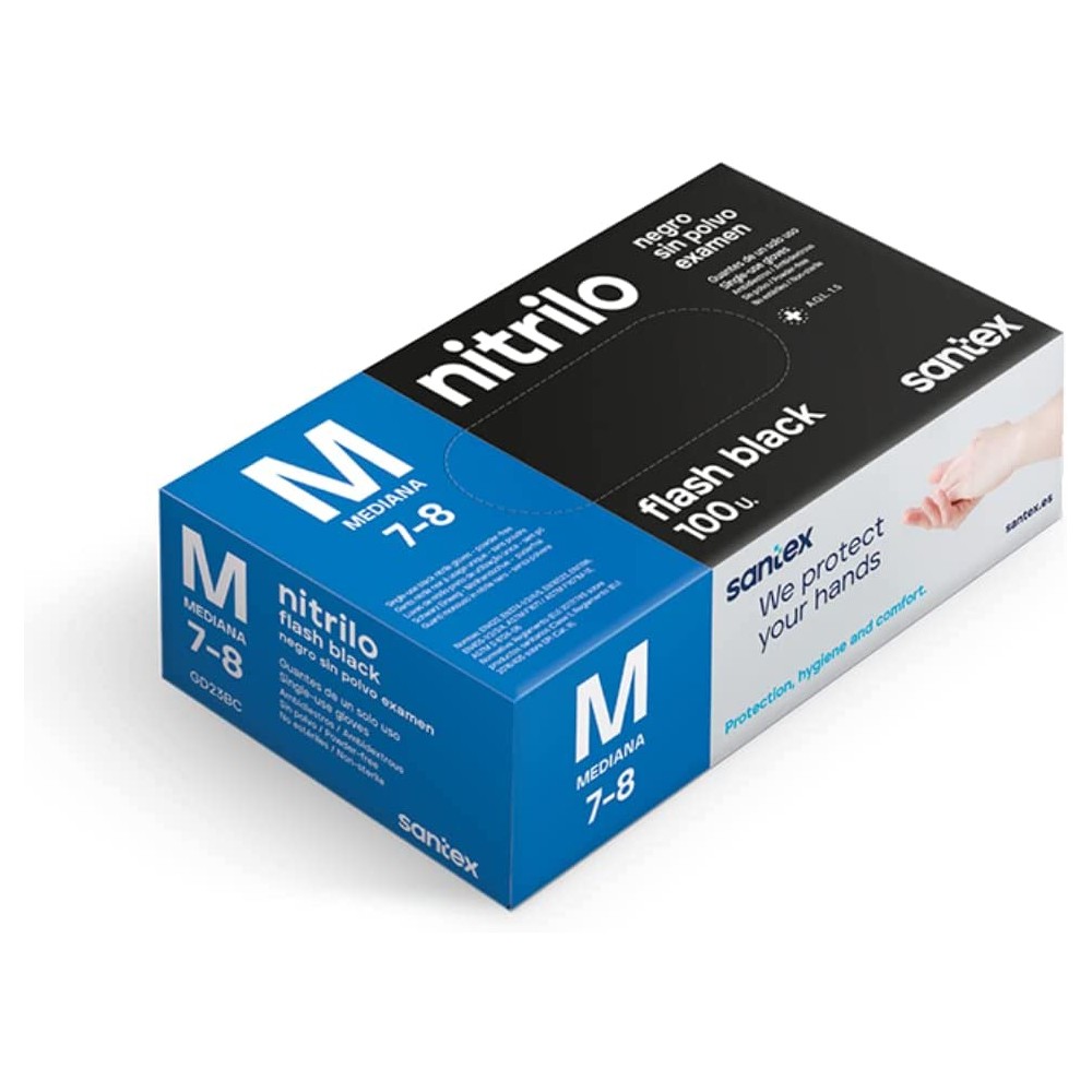 Santex Flash Black Pack de 100 Guantes de Nitrilo Talla M - 6 gramos - Sin Polvo - Libre de Latex - No Esteriles - Color Negro