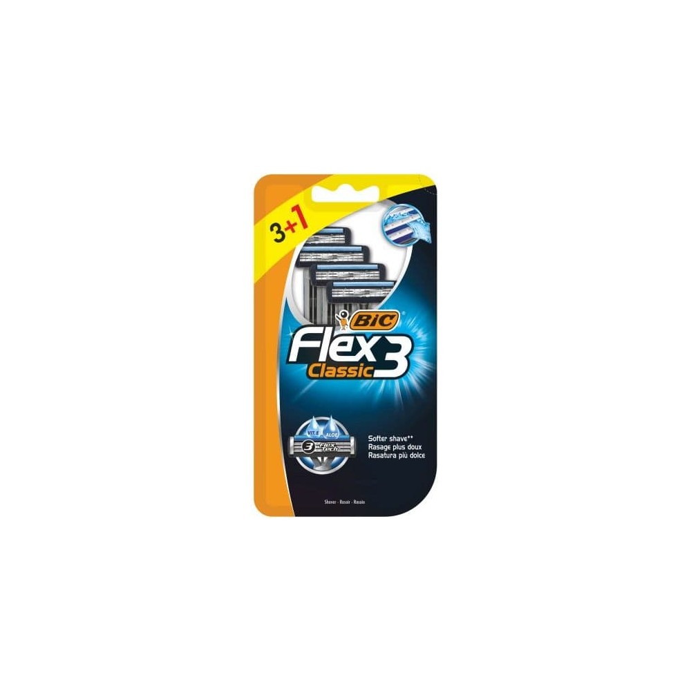 Bic Flex 3 Pack de 3+1 Maquinillas de Afeitar Desechables de 3 Hojas - Cabezal Pivotante - Tira Lubricante con Aloe Vera