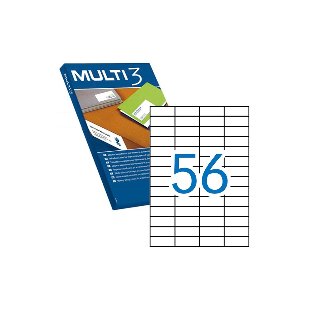 Multi3 Pack de 5.600 Etiquetas Blancas Cantos Rectos Tamaño 52.5X21.2mm con Adhesivo Permanente para Multiples Usos